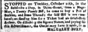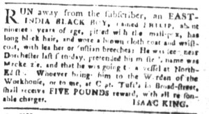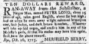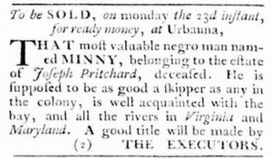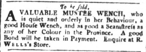 The Slavery Adverts 250 Project chronicles the role of newspaper advertising in perpetuating slavery in the era of the American Revolution. The project seeks to reveal the ubiquity of slavery in eighteenth-century life from New England to Georgia by republishing advertisements about enslaved people – for sale as individuals or in groups, wanted to purchase or for hire for short periods, runaways who liberated themselves, and those who were subsequently captured and confined in jails and workhouses – in daily digests on this site as well as in real time via the @SlaveAdverts250 Twitter feed, utilizing twenty-first-century media to stand in for the print media of the eighteenth century.