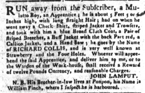 These advertisements appeared in colonial American newspapers 250 years ago today.