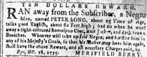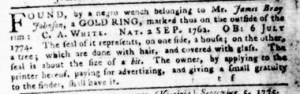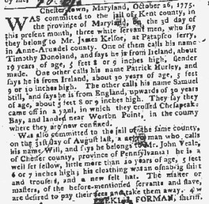 These advertisements appeared in colonial American newspapers 250 years ago today.