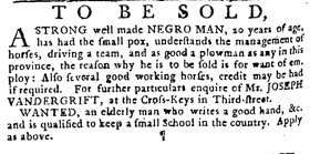 These advertisements appeared in colonial American newspapers 250 years ago today.