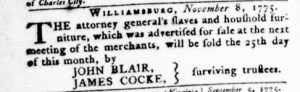The Slavery Adverts 250 Project chronicles the role of newspaper advertising in perpetuating slavery in the era of the American Revolution. The project seeks to reveal the ubiquity of slavery in eighteenth-century life from New England to Georgia by republishing advertisements about enslaved people – for sale as individuals or in groups, wanted to purchase or for hire for short periods, runaways who liberated themselves, and those who were subsequently captured and confined in jails and workhouses – in daily digests on this site as well as in real time via the @SlaveAdverts250 Twitter feed, utilizing twenty-first-century media to stand in for the print media of the eighteenth century.