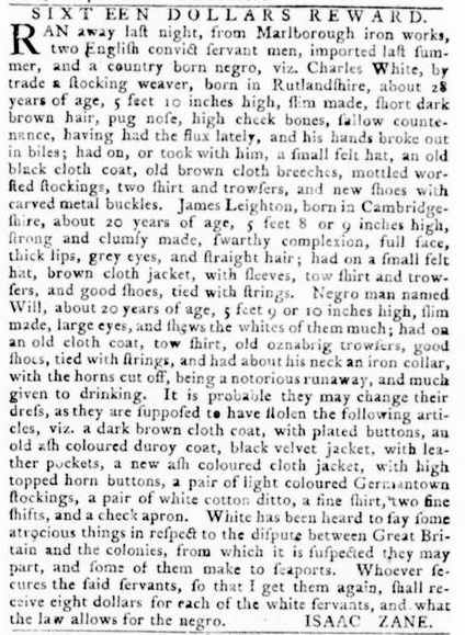 These advertisements appeared in colonial American newspapers 250 years ago today.