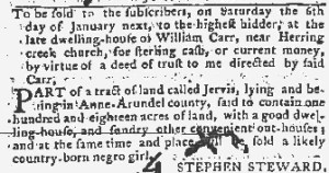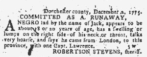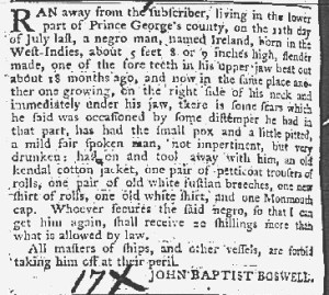 The Slavery Adverts 250 Project chronicles the role of newspaper advertising in perpetuating slavery in the era of the American Revolution. The project seeks to reveal the ubiquity of slavery in eighteenth-century life from New England to Georgia by republishing advertisements about enslaved people – for sale as individuals or in groups, wanted to purchase or for hire for short periods, runaways who liberated themselves, and those who were subsequently captured and confined in jails and workhouses – in daily digests on this site as well as in real time via the @SlaveAdverts250 Twitter feed, utilizing twenty-first-century media to stand in for the print media of the eighteenth century.