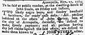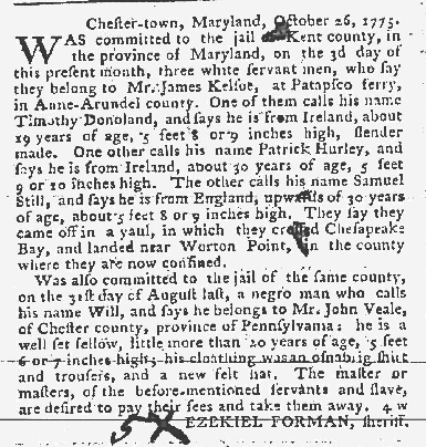 These advertisements appeared in colonial American newspapers 250 years ago today.