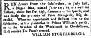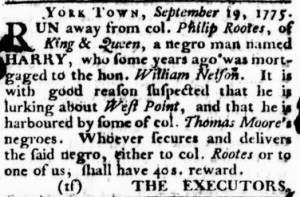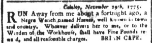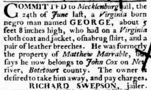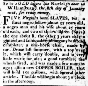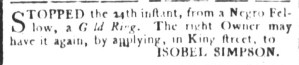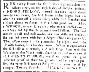 The Slavery Adverts 250 Project chronicles the role of newspaper advertising in perpetuating slavery in the era of the American Revolution. The project seeks to reveal the ubiquity of slavery in eighteenth-century life from New England to Georgia by republishing advertisements about enslaved people – for sale as individuals or in groups, wanted to purchase or for hire for short periods, runaways who liberated themselves, and those who were subsequently captured and confined in jails and workhouses – in daily digests on this site as well as in real time via the @SlaveAdverts250 Twitter feed, utilizing twenty-first-century media to stand in for the print media of the eighteenth century.