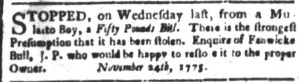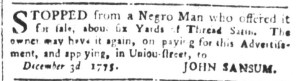 These advertisements appeared in colonial American newspapers 250 years ago today.