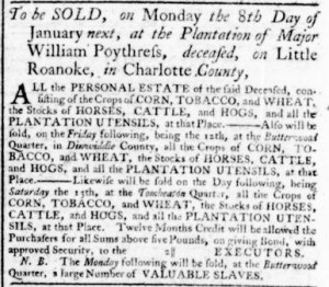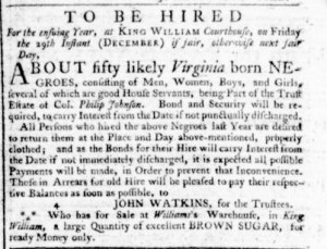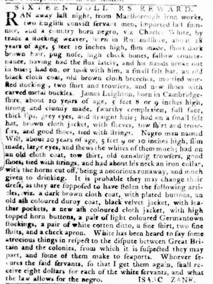 The Slavery Adverts 250 Project chronicles the role of newspaper advertising in perpetuating slavery in the era of the American Revolution. The project seeks to reveal the ubiquity of slavery in eighteenth-century life from New England to Georgia by republishing advertisements about enslaved people – for sale as individuals or in groups, wanted to purchase or for hire for short periods, runaways who liberated themselves, and those who were subsequently captured and confined in jails and workhouses – in daily digests on this site as well as in real time via the @SlaveAdverts250 Twitter feed, utilizing twenty-first-century media to stand in for the print media of the eighteenth century.