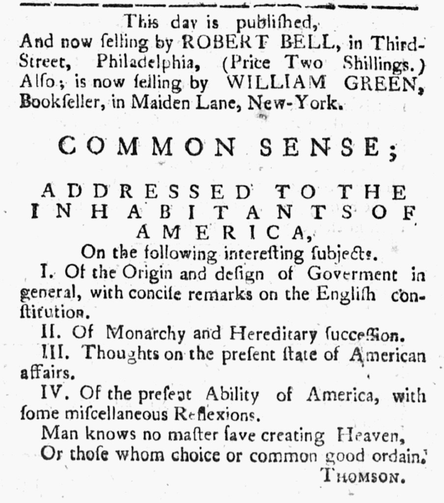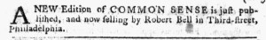 These advertisements for Common Sense appeared in American newspapers 250 years ago today.