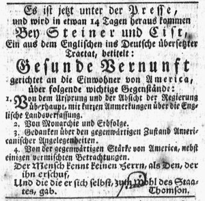 These advertisements for Common Sense appeared in American newspapers 250 years ago today.