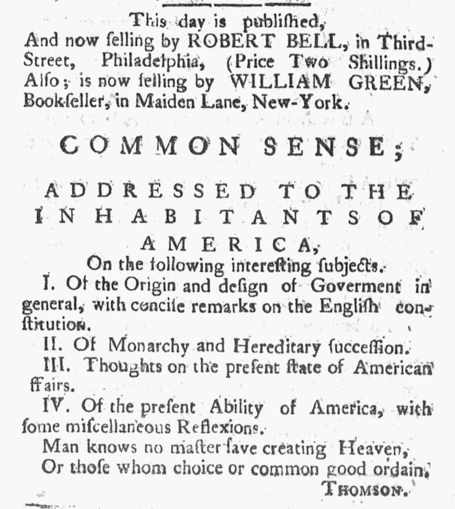 These advertisements for Common Sense appeared in American newspapers 250 years ago today.