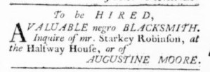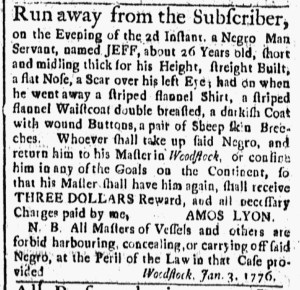 The Slavery Adverts 250 Project chronicles the role of newspaper advertising in perpetuating slavery in the era of the American Revolution. The project seeks to reveal the ubiquity of slavery in eighteenth-century life from New England to Georgia by republishing advertisements about enslaved people – for sale as individuals or in groups, wanted to purchase or for hire for short periods, runaways who liberated themselves, and those who were subsequently captured and confined in jails and workhouses – in daily digests on this site as well as in real time via the @SlaveAdverts250 Twitter feed, utilizing twenty-first-century media to stand in for the print media of the eighteenth century.