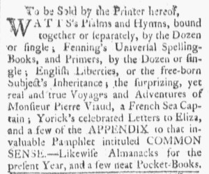 Advertisements for Common Sense Published April 20, 1776