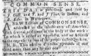 These advertisements for Common Sense appeared in American newspapers 250 years ago today.