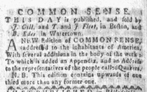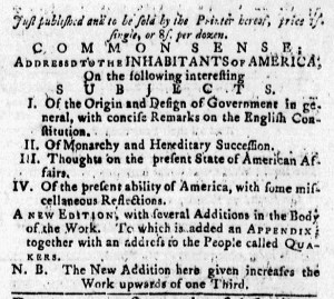 These advertisements for Common Sense appeared in American newspapers 250 years ago today.