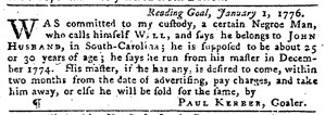 What was advertised in a revolutionary American newspaper 250 years ago today?