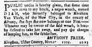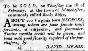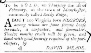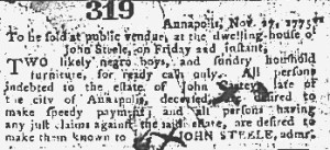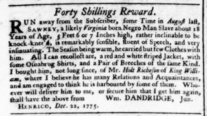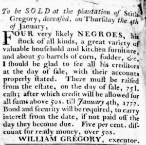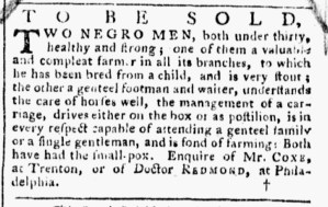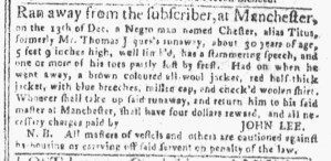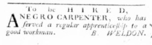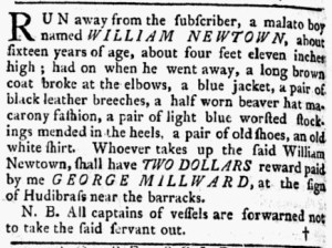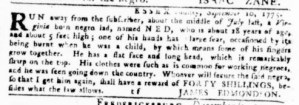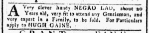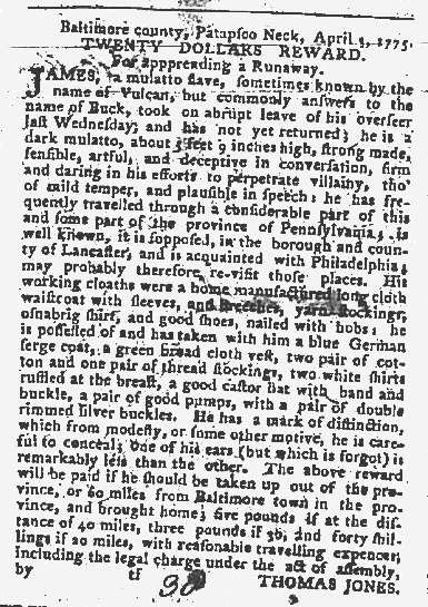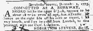 The Slavery Adverts 250 Project chronicles the role of newspaper advertising in perpetuating slavery in the era of the American Revolution. The project seeks to reveal the ubiquity of slavery in eighteenth-century life from New England to Georgia by republishing advertisements about enslaved people – for sale as individuals or in groups, wanted to purchase or for hire for short periods, runaways who liberated themselves, and those who were subsequently captured and confined in jails and workhouses – in daily digests on this site as well as in real time via the @SlaveAdverts250 Twitter feed, utilizing twenty-first-century media to stand in for the print media of the eighteenth century.
