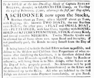 The Slavery Adverts 250 Project chronicles the role of newspaper advertising in perpetuating slavery in the era of the American Revolution. The project seeks to reveal the ubiquity of slavery in eighteenth-century life from New England to Georgia by republishing advertisements about enslaved people – for sale as individuals or in groups, wanted to purchase or for hire for short periods, runaways who liberated themselves, and those who were subsequently captured and confined in jails and workhouses – in daily digests on this site as well as in real time via the @SlaveAdverts250 Twitter feed, utilizing twenty-first-century media to stand in for the print media of the eighteenth century.