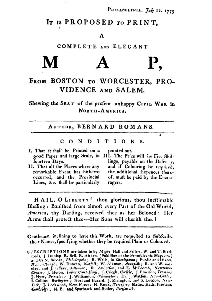 Yet the “MAP OF BOSTON” was the main attraction in that advertisement. In addition to the headline in capital letters, Sause’s notice billed the map as “one of the most correct that has ever been published.” To help make sales, he emphasized that the “draught [draft] was taken by the most skilful Draughtsman in all America.” Buyers could depend on its accuracy because Romans “was on the spot at the engagements of Lexington and Bunker’s-Hill.” Current events certainly played a role in Sause expanding his business to incorporate a new revenue stream, yet marketing and selling both Brooks and Romans’s map of Boston and prints depicting the Battle of Bunker Hill also gave him an opportunity to participate in politics via the marketplace.