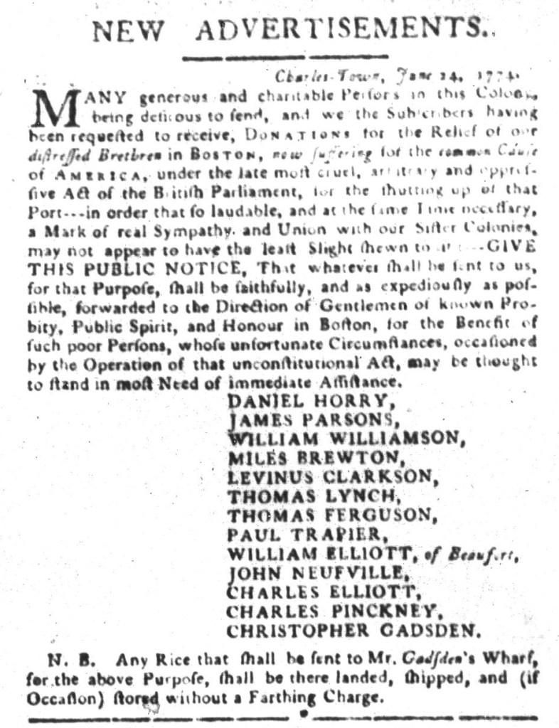 “Imported from LONDON the Spring before the Harbour of Boston was blockade up.”