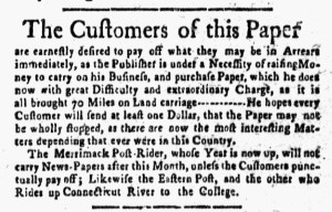 [1] Edward Connery Lathem, Chronological Tables of American Newspapers, 1690-1802 (American Antiquarian Society and Barre Publishers, 1972), 11.