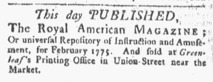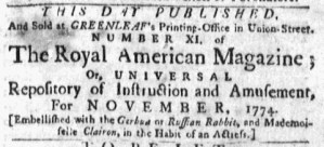 “This day was published … Royal American Magazine … NOVEMBER, 1774”
