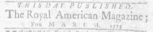 “THIS DAY PUBLISHED, The Royal American Magazine; FOR MARCH, 1775.”