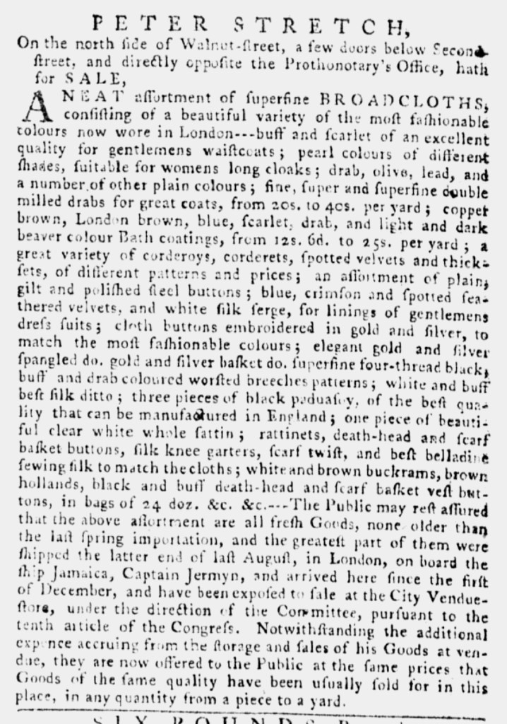 He also realized that most prospective customers did not know him and thus might be cautious about handing over letters and packages. To address such concerns, he included a character reference signed by nine residents of Easton. “We, the subscribers,” they declared, “do recommend the above named John Spering as a Rider, as we believe he will perform his duty therein faithfully and honestly.” They noted that Spering had been “a resident in Easton for upwards of thirteen years, where he has, during that time, behaved himself very well.” Prospective clients could have confidence that he would faithfully deliver their letters without tampering with them. The signatories would have been as unknown to most readers as Spering, but the titles that accompanied some of their names testified to their trustworthiness and standing in their community: “Lewis Gordon, Esq; Henry Fullert, Esq; Dr. Andrew Ledlie, [and] Jacob Orndt, Esq.” That so many of his neighbors endorsed Spering at the risk of their own reputations may have helped to convince the “Gentlemen and Ladies” that Spering addressed to avail themselves of his services when they had letters to post.