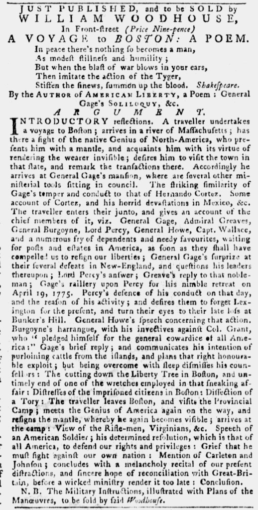 What was advertised in a revolutionary American newspaper 250 years ago today?