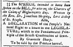 What was advertised in a revolutionary American newspaper 250 years ago today?