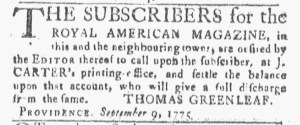 “THE Subscriber having entered into the American Army, desires all Persons indebted to him to make immediate Payment to his Wife.”