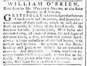 “Fringe and Lace maker in Front street, between Race and Vine-streets, … Philadelphia.”