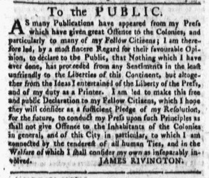 William and Sarah Long and their students “removed” from New York before “sudden danger and confusion” found them. James Rivington, on the other hand, fled the city after repeated attacks on his printing office made it impossible for him to continue printing his newspaper.