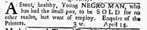 Even as Anderson used his newspaper to advocate for liberty for colonizers who endured the abuses perpetrated by Parliament, he used it to constrain the freedom of Black men, women, and children. The advertisement about Mingo encouraged readers to engage in surveillance of Black men to determine if any they encountered matched his description. In addition to publishing advertisements about enslaved people, Anderson also served as a broker. The advertisement for the young enslaved woman whose name was once known instructed interested parties to “Enquire of the Printer.” Anderson did more than merely disseminate information. He actively participated in the sale of the young enslaved woman as one of the services he provided as printer.